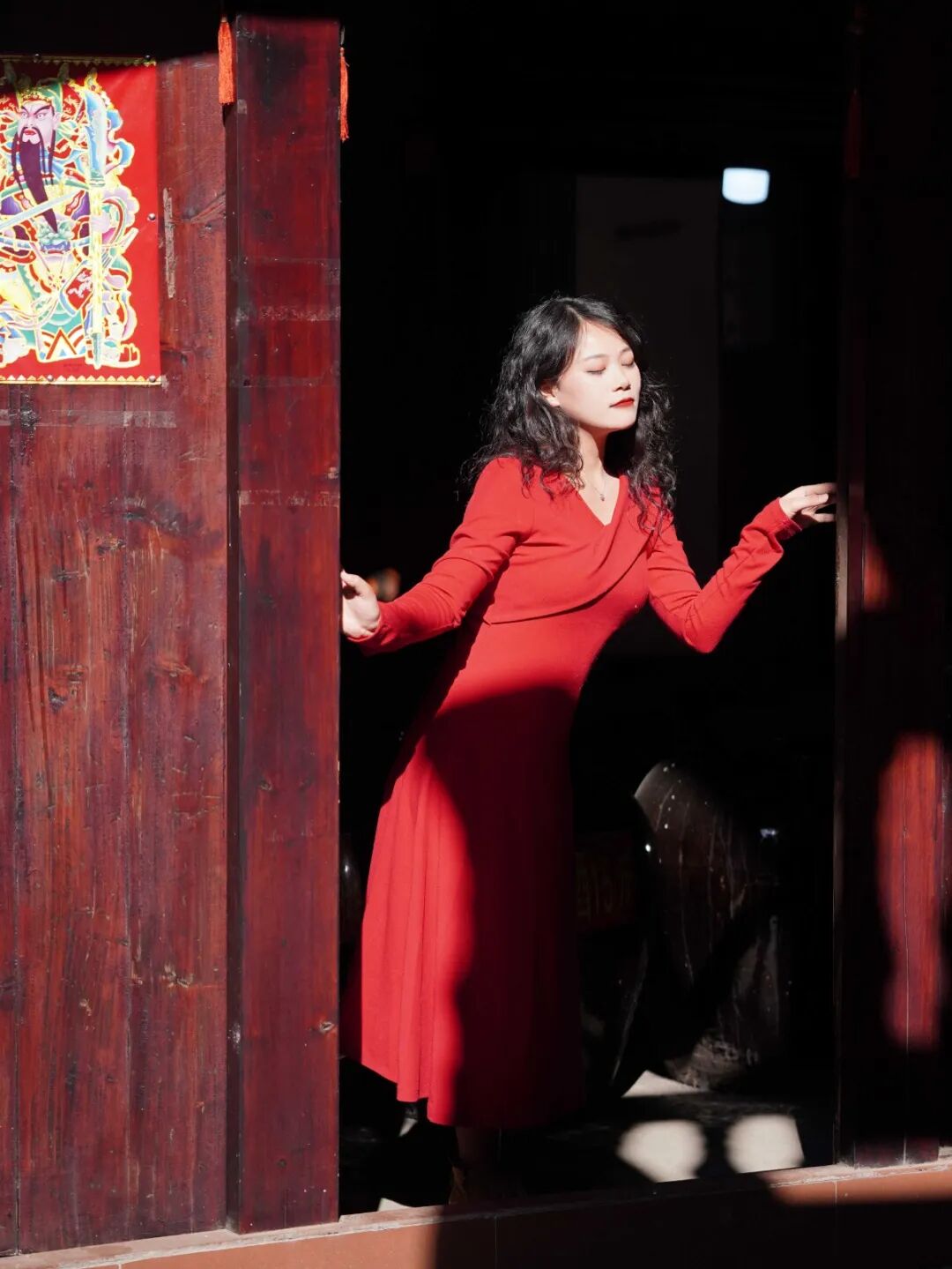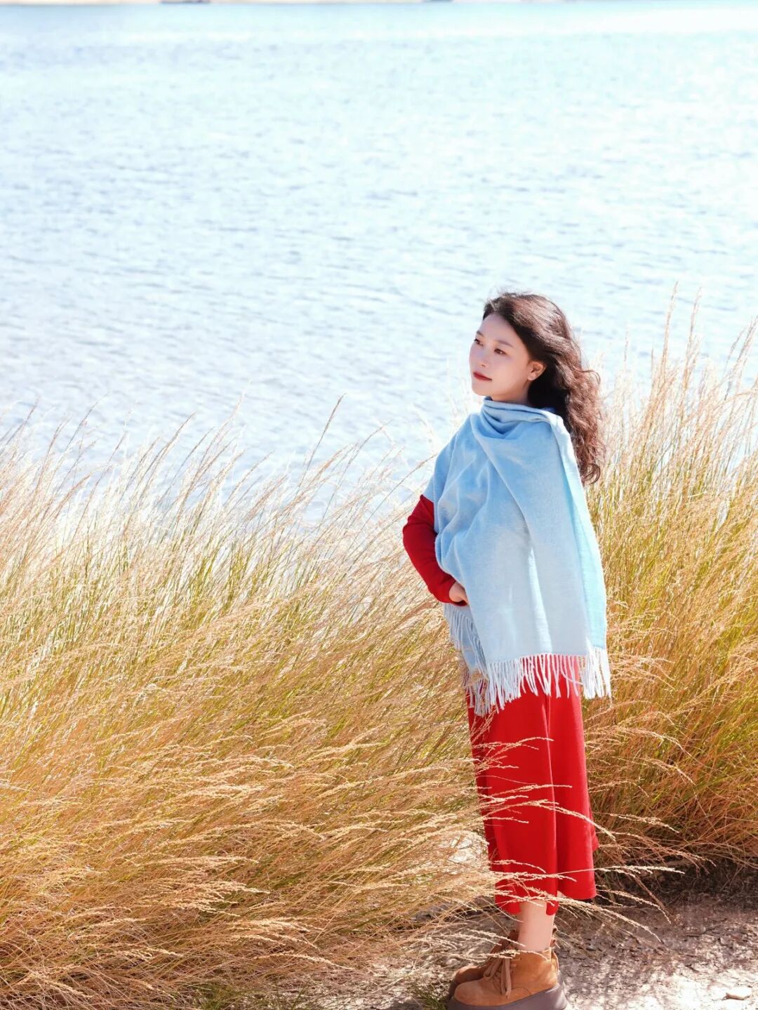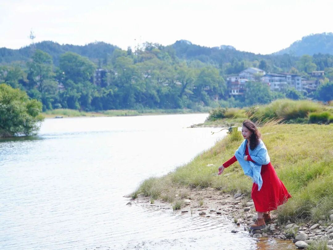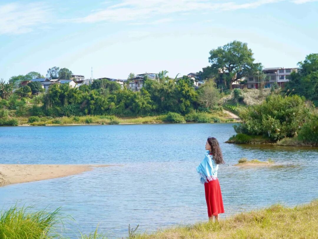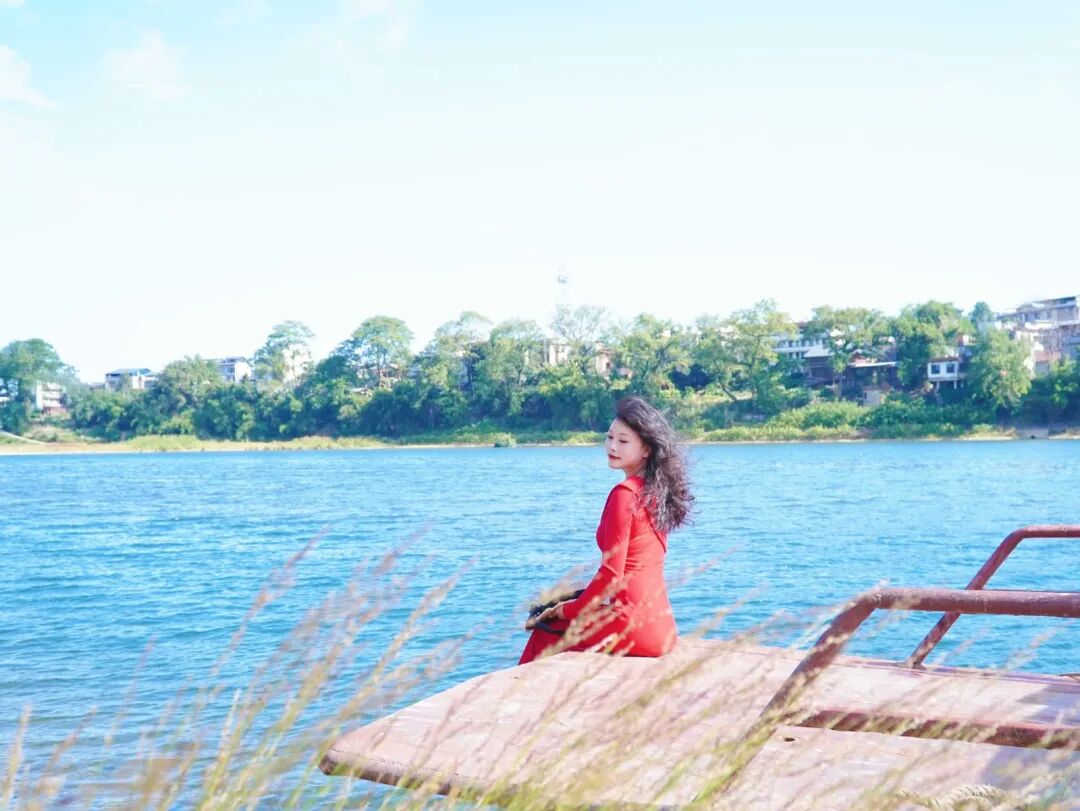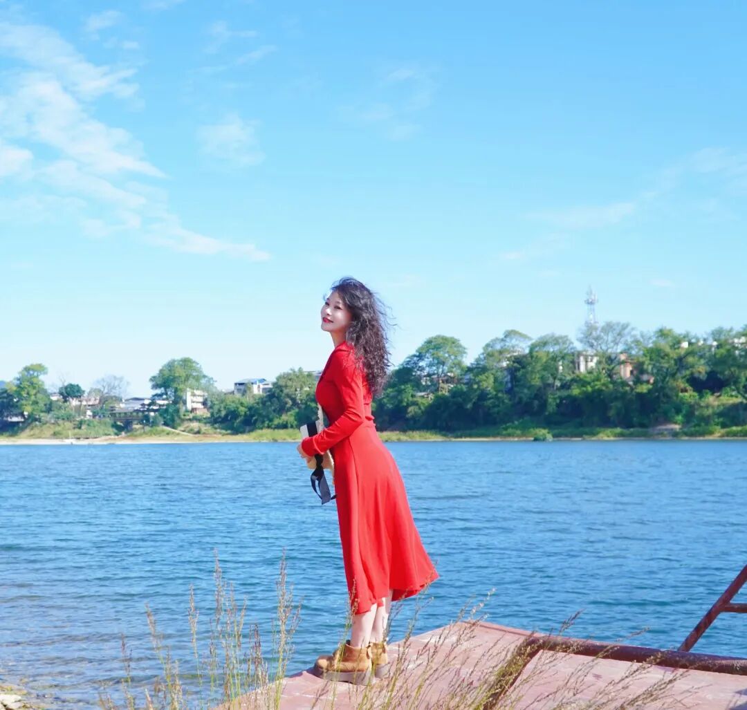 一袭红裙,美到无与伦比。每每看到此景,都会让人不由得发出“所谓伊人,在水一方”的喟叹。
